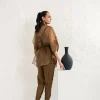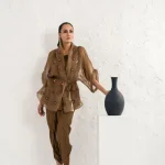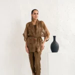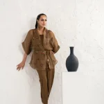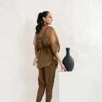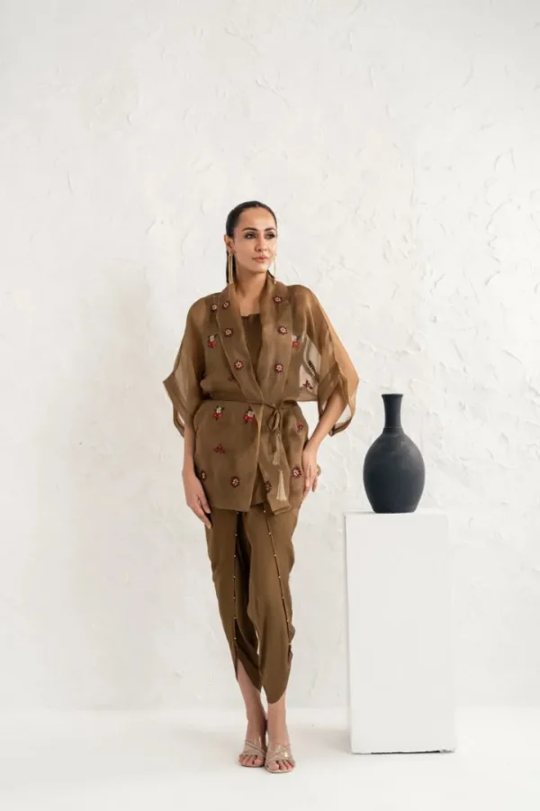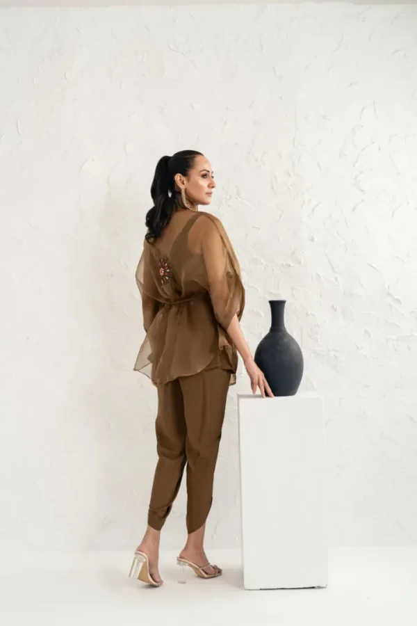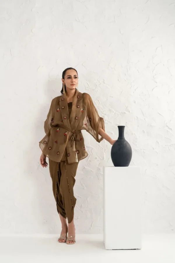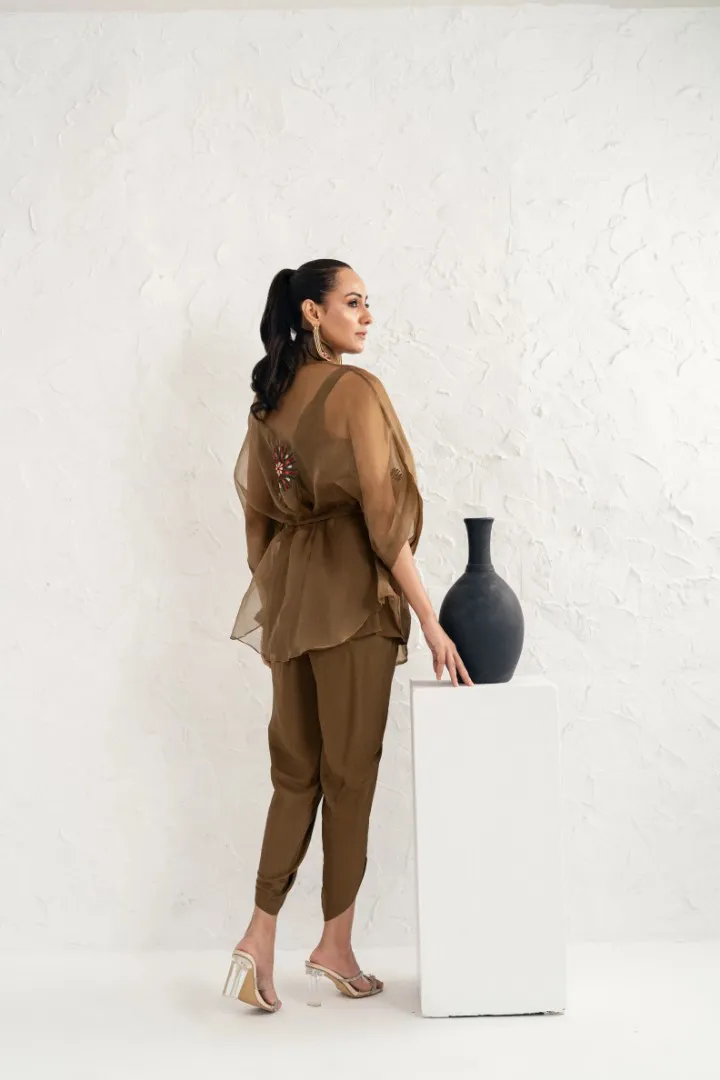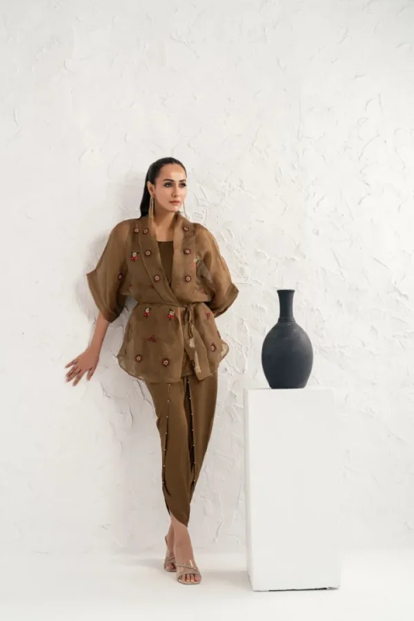 Crafted from pure organza with beautiful contrasting embroidery and tassel detailing, this wrap can accompany you anywhere. Pair it with matching tulip pant to complete the look.