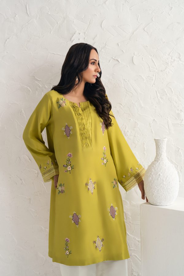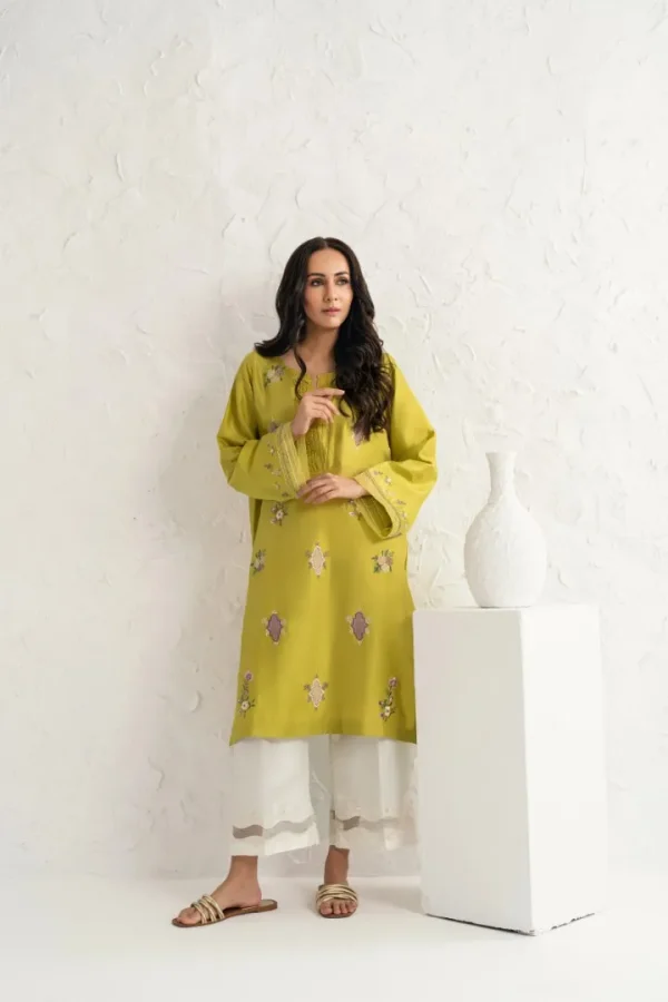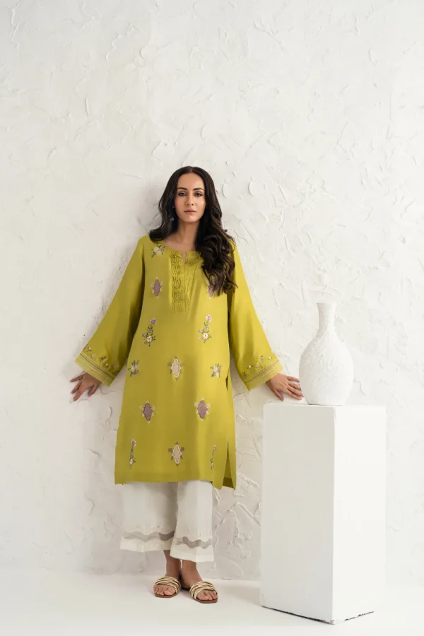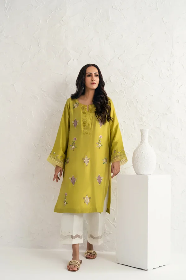 An absolute classic kurta detailed with fine appliqué, neck detailing and delicate placement of beads. It can paired with our pure silk embroidered culotte.