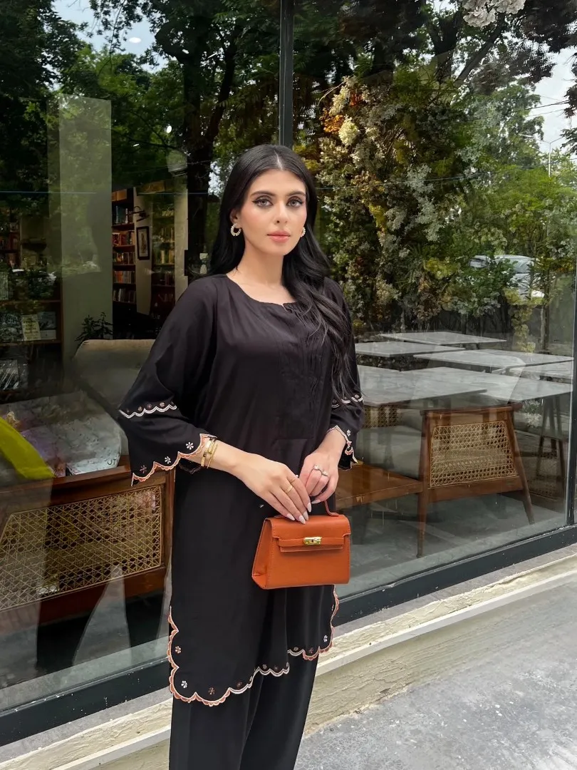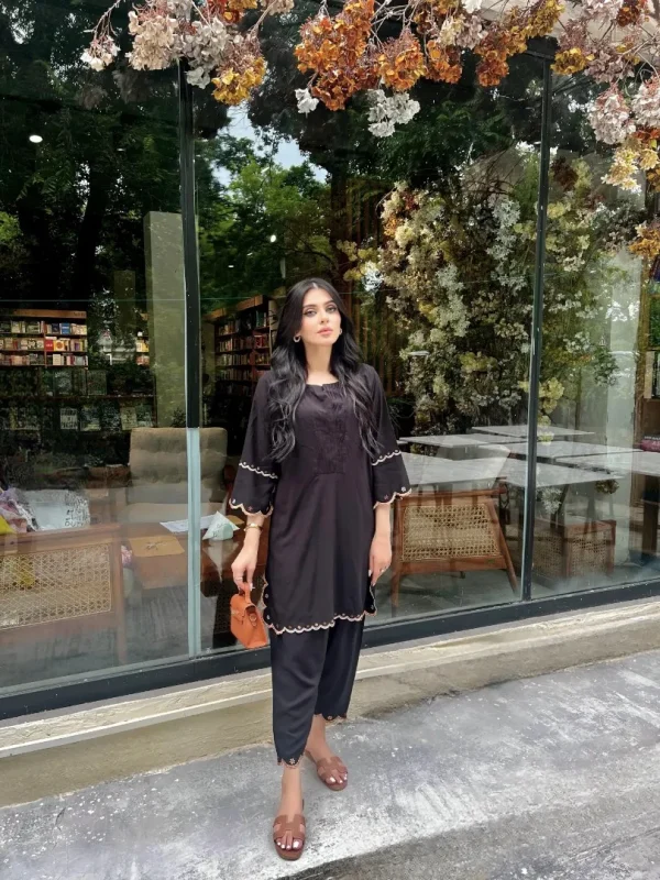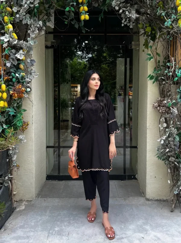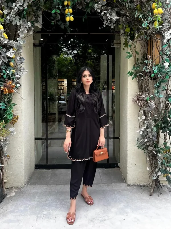 • Material: Lawn cotton • Embroidery and pleat detailing • Includes shirt and culotte