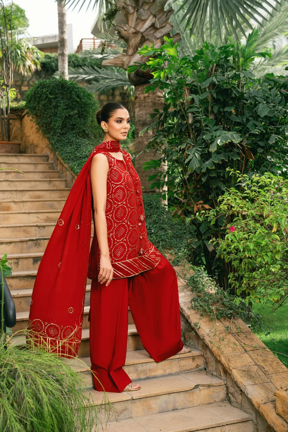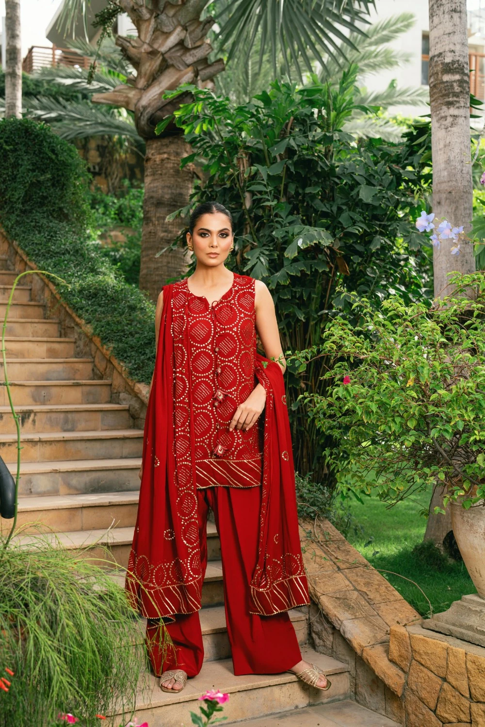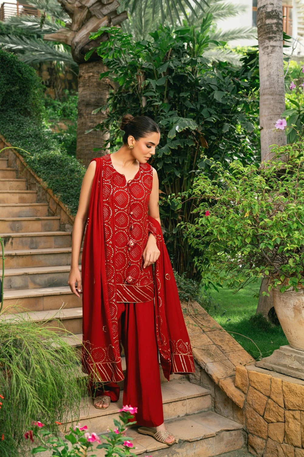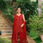 This classic chiffon shirt is beautifully embellished with kamdani, a piece that will always be a wardrobe staple for formal occasions. Pair it with a matching farshi shalwar and a heavy kamdani detailed dupatta for that perfect look.